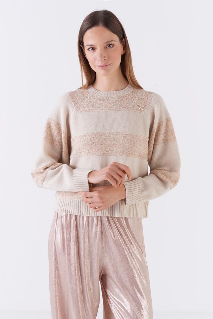 Pantalone a sigaretta a vita alta in tessuto brillante.