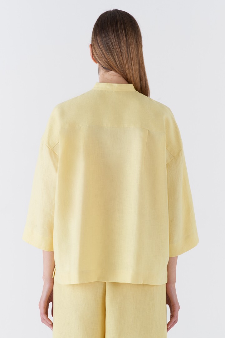 CAMICIA OVERSIZE CON MANICA TRE QUARTI IN LINO CON TASCHE