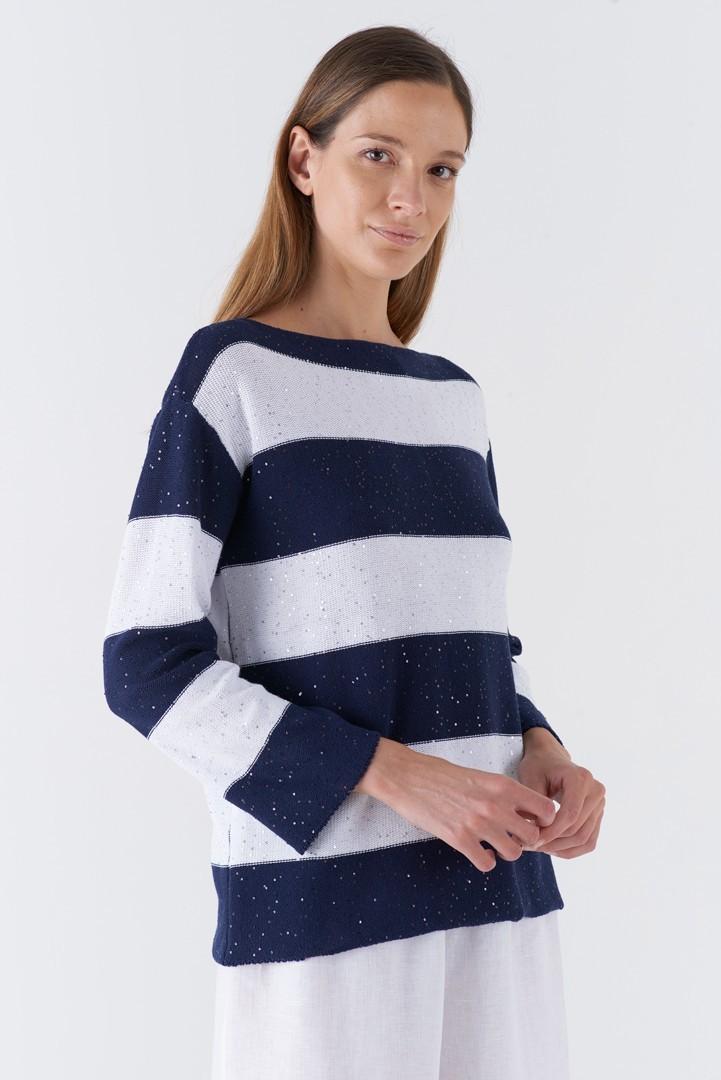 T-SHIRT IN COTONE E VICOSA CON COLLO E POLSINI IN COTONE A CONTRASTO