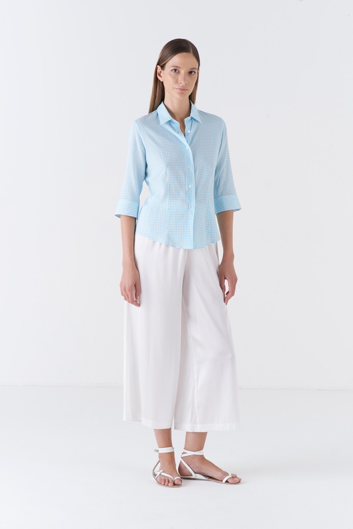 CAMICIA CON MANICA TRE QUARTI IN RASO DI SETA STRETCH OPACO CON STAMPA A ROMBI