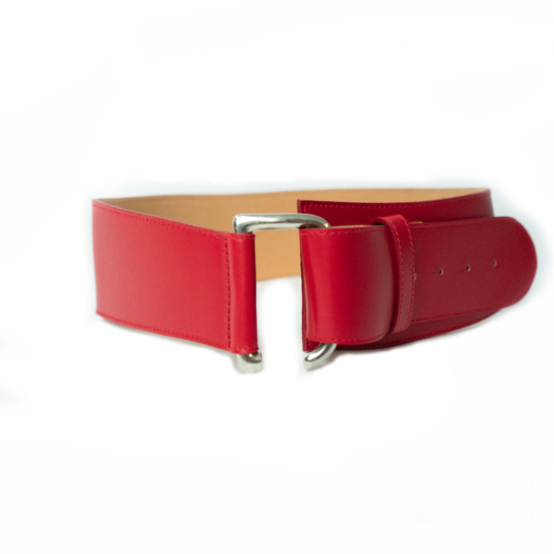 Cintura rossa alta con gancio.Larghezza regolabile.