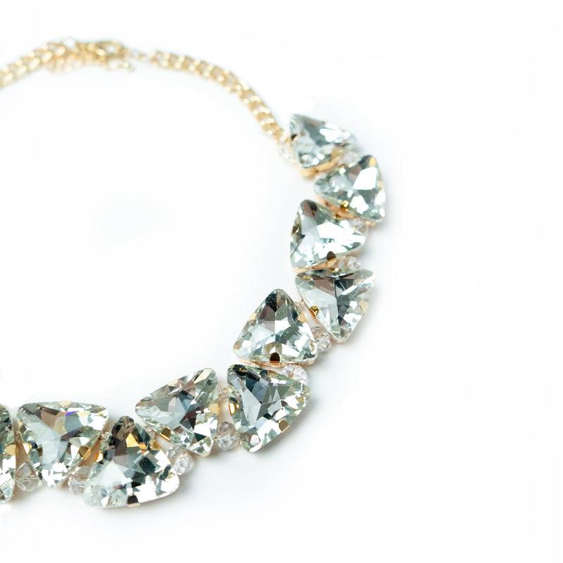 Collana elegante con pietre triangolari bianche incastrate in catena oro