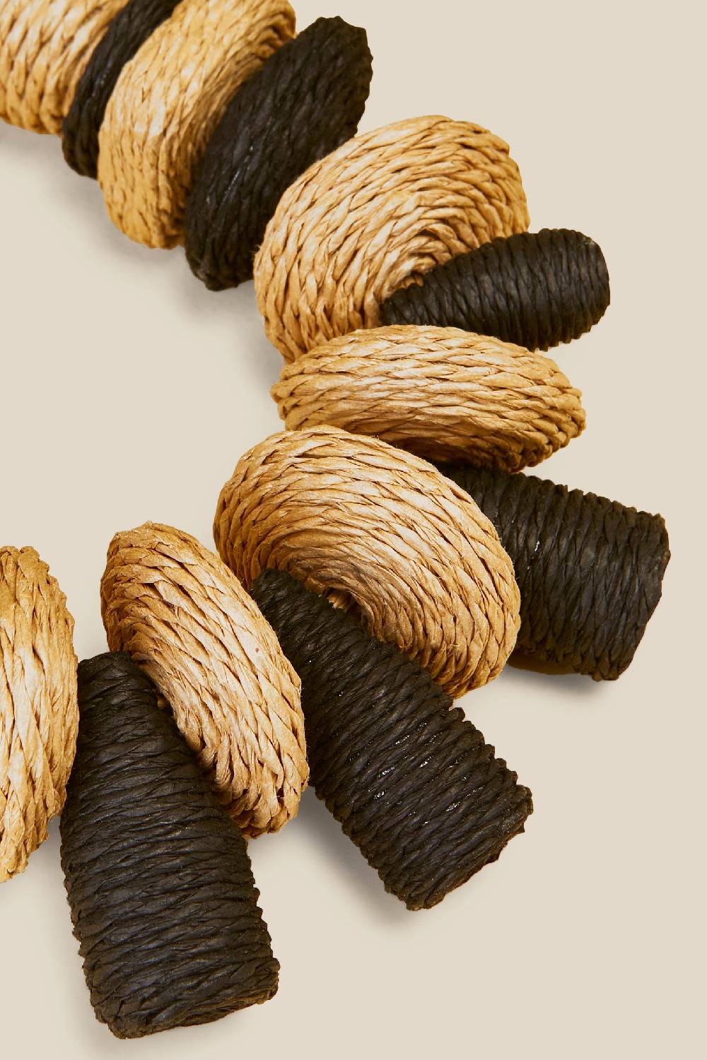 COLLANA CON ELEMENTI RICOPERTI IN RAFIA BICOLORE. HANDMADE.