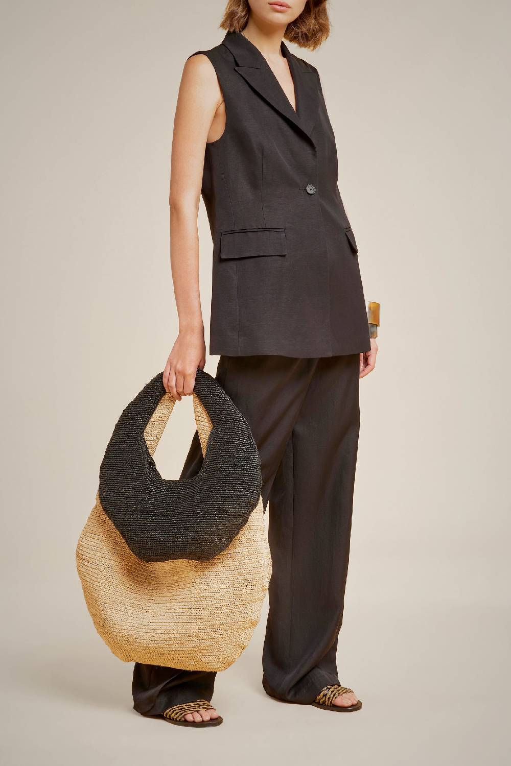MULE PLATFORM DOPPIA FASCIA RICOPERTA IN RAFIA INTRECCIATA, T. 12 CM