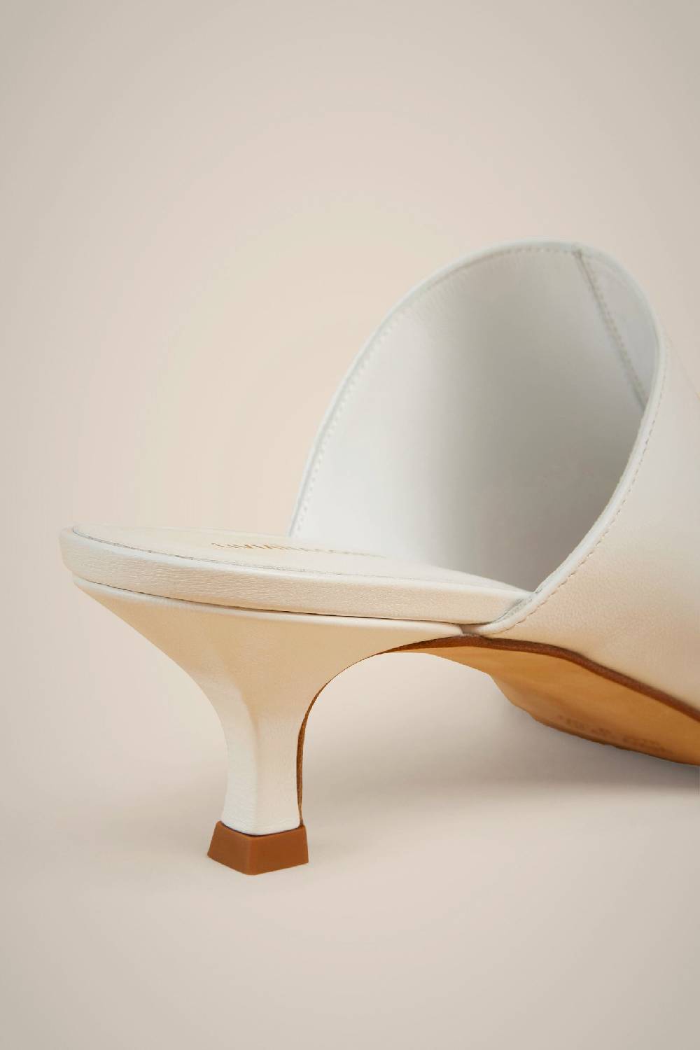 MULES IN VERA PELLE PUNTA APERTA T. 50 FONDO CUOIO.Misure