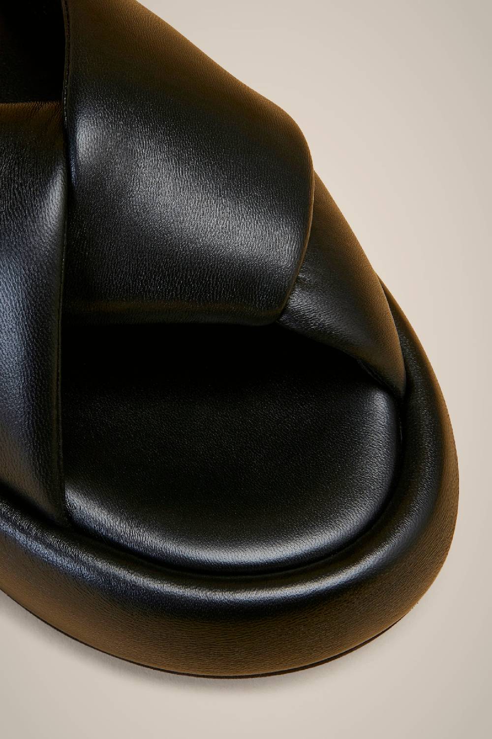 SANDALO PLATFORM CON FASCIA IMBOTTITA E INCROCIATA IN VERA PELLE. T. 4,5 CM.