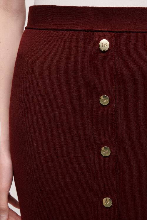 Gonna modello tubino in pura lana vergine con bottoni centrali con logo LS, lunghezza sotto al ginocchio. Vestibilità regolare.