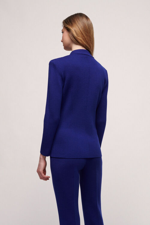 Giacca modello doppiopetto in pura lana vergine con trama a maglia rasata, tasche a toppa sui fianchi con la stessa lavorazione e bottoni in metallo dorato con logo LS. Vestibilità regolare.