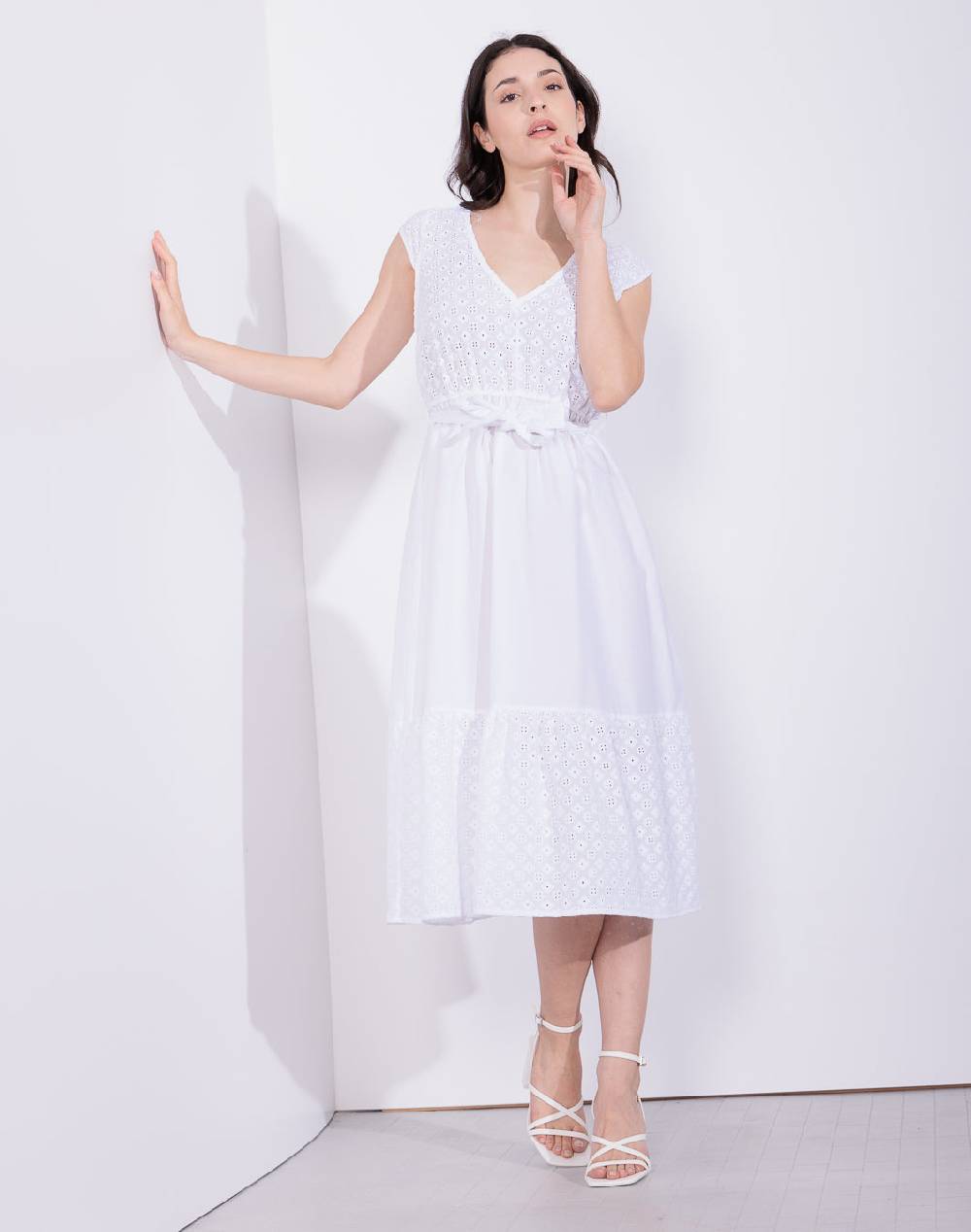 Donna / Bella - Abito midi in popeline unito e sangallo