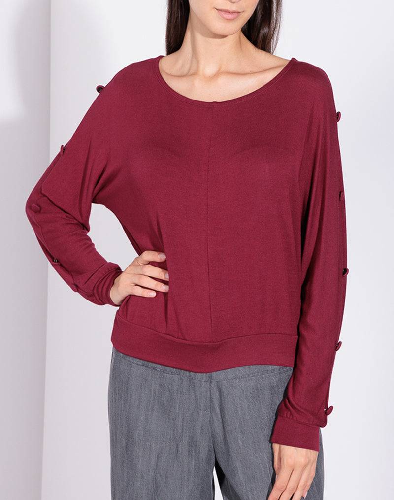 Maglia manica lunga in tessuto a costine di viscosa con dettaglio bottoni sulla manica.