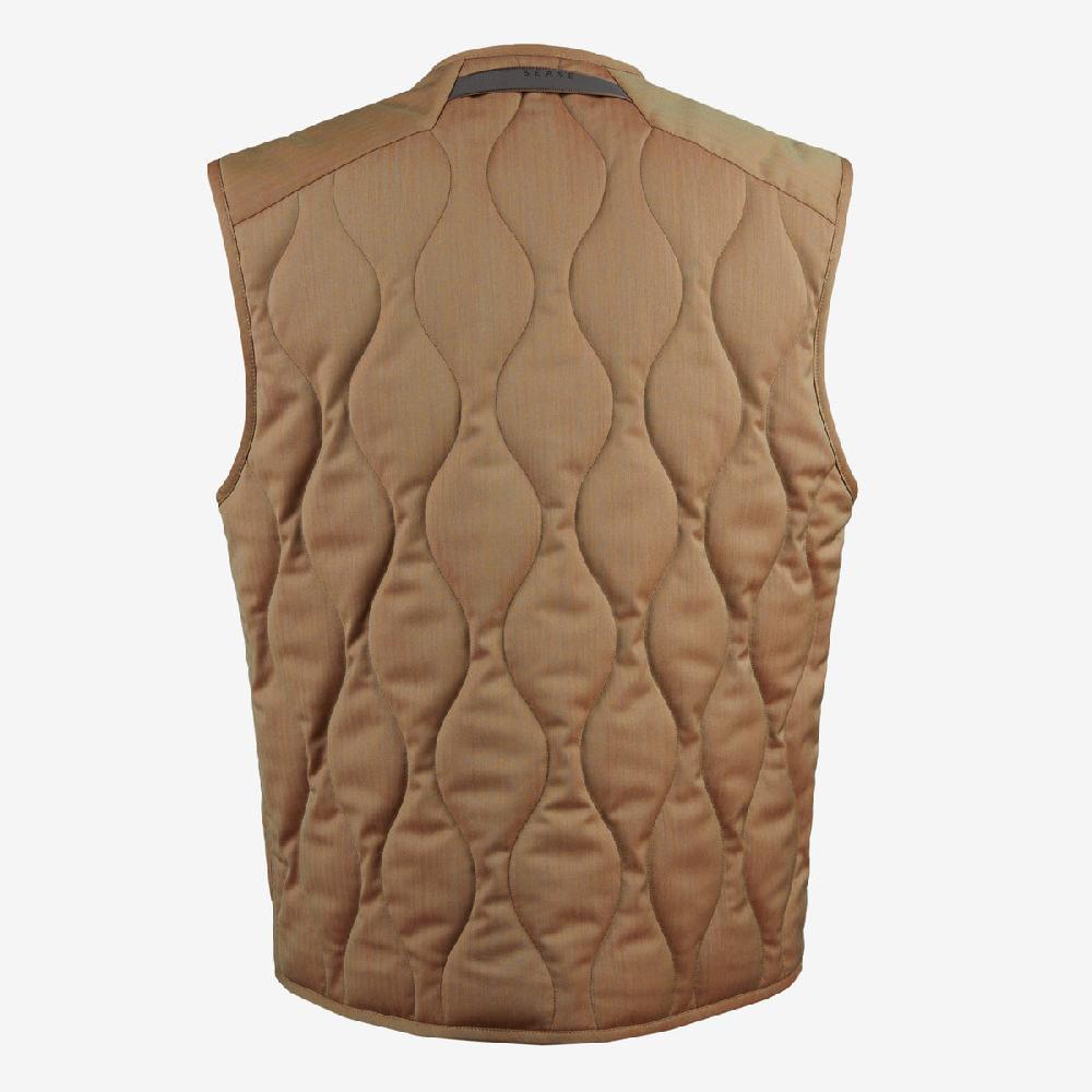 Il QUILTED VEST è un gilet trapuntato, realizzato in lana e nylon bio-based Solaro, trattato con una membrana performante a 2 strati, resistente sia all'acqua che al vento, che garantisce elevata traspirabilità. Ispirato all'abbigliamento militare, questo gilet si distingue come un capo sofisticato da indossare come strato esterno o come strato intermedio sotto giacche o cappotti. Il tessuto Solaro è stato sviluppato esclusivamente da SEASE per combinare prestazioni tecniche ed eleganza contemporanea: la lana fornisce termoregolazione mentre il bio-nylon ne aumenta la durabilità.• Strato leggero di imbottitura in poliestere• Interno foderato in nylon ripstop per una maggiore durata • Chiusura frontale con bottoni ispirati al mondo militare• Tasche frontali spaziose • Completamente Made in Italy per la massima qualità e sostenibilità